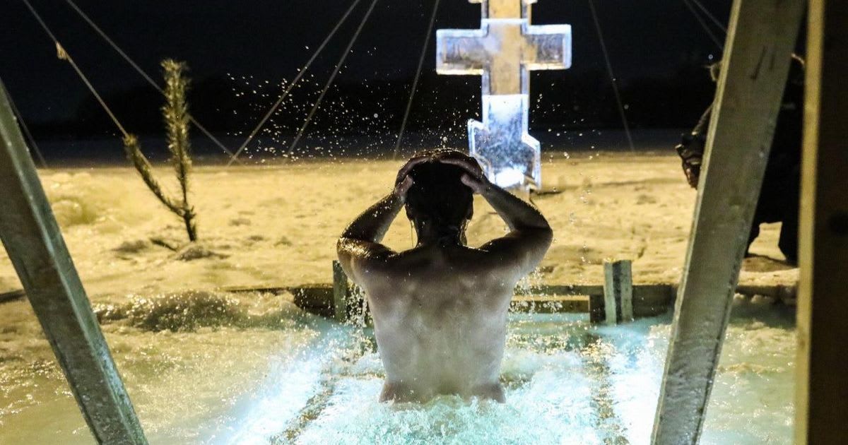 Por todo o país, em lagos, rios e até buracos abertos no gelo de canais urbanos, são feitas piscinas no formato de uma cruz.