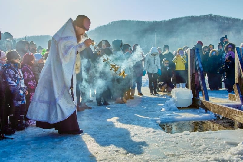 É a festa ortodoxa que celebra o batismo de Jesus Cristo. Para a Igreja Ortodoxa Russa, é um dos feriados mais importantes, marcando o fim das festas de Natal (que aqui vão até essa data!). A noite anterior, 18 de janeiro, é a Véspera da Epifania, um dia de rigoroso jejum.